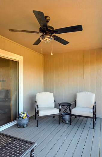 Specialised installation of weather-rated ceiling fans for alfresco areas, patios, and balconies, built to withstand the elements.